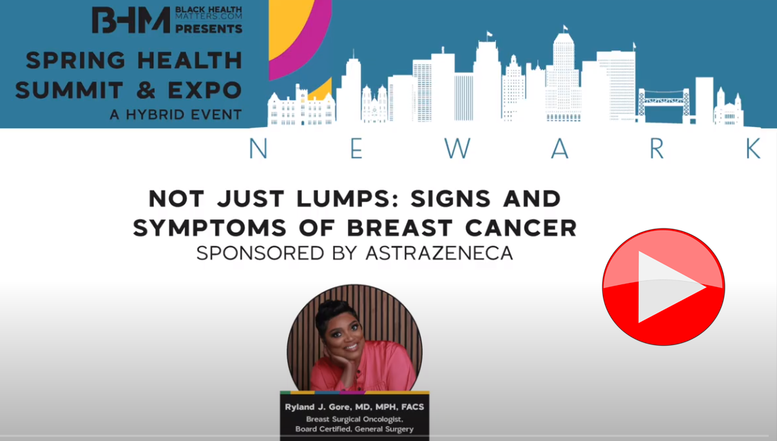 HomeHealthSpot the Signs and Symptoms Of Breast Cancer #BHMSummits Contents By Black Health Matters Spot the Signs and Symptoms Of Breast Cancer #BHMSummits Contents - Advertisement - Featuring Breast Surgery Oncologist Ryland J. Gore, MD, MPH, FACS and sponsored by Astrazenica Recorded Live in front of our Newark audience at the 2023 Black Health Matters Spring Summit. Previous articlePrioritizing Men’s Health: An Essential Checklist for Every AgeNext articleEnd(o) the stigma | #endometriosis Categories ADHD1Alzheimer's/Dementia72Asthma84Autism16Autoimmune Disease58Beauty & Grooming24 Latest Posts Celebrities & Trends Reverend Jesse Jackson, a Civil Rights Legend, Has Passed Away Corynne Corbett - 02/17/2026 Read more Family & Relationships The Body Knows: Two Mothers Who Survived the Unthinkable Fajr Eutsey - 02/17/2026 Read more Women's Health Where Women Live Impacts Their Health: Here Are The 10 Best States Taylor Lofton - 02/11/2026 Read more
