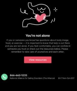 As of June 2, 2025, TikTok has removed the hashtag #SkinnyTok to protect children online. If the hashtag is searched, TikTok will provide a link to resources that can be visited for help, such as the phone number for the National Alliance for Eating Disorders: 866-622-1635.